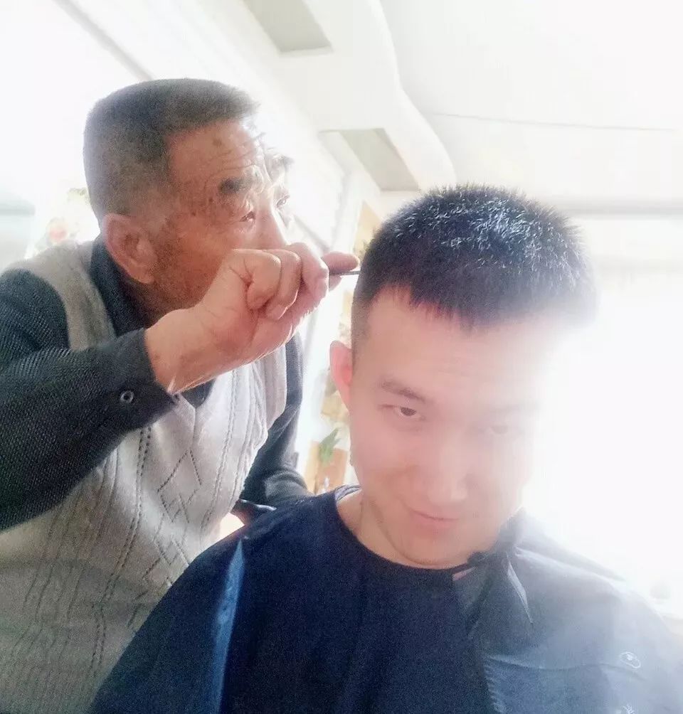 我對(duì)奶奶說(shuō):“沒(méi)關(guān)系奶奶,他給自己剪都能剪這么好,這兩天理發(fā)店人又多還漲價(jià),爺爺,你剪吧!”