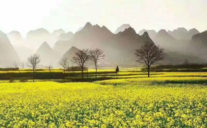 前幾天路過(guò)萬(wàn)峰林時(shí),山邊田里的油菜花也相續(xù)開(kāi)放了。