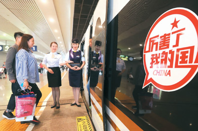 “厲害了,我的國(guó)!”在以350公里時(shí)速行進(jìn)的“復(fù)興號(hào)”列車上,這6個(gè)紅色的大字格外醒目。