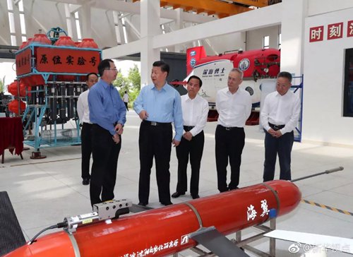 12日下午,習(xí)近平總書記來到位于海南三亞的中國科學(xué)院深??茖W(xué)與工程研究所,仔細(xì)察看“海翼”號深?;铏C(jī)、“天涯”深淵著陸器等設(shè)備,并同“深海勇士”號載人潛水器設(shè)計師和深潛團(tuán)隊親切交談。