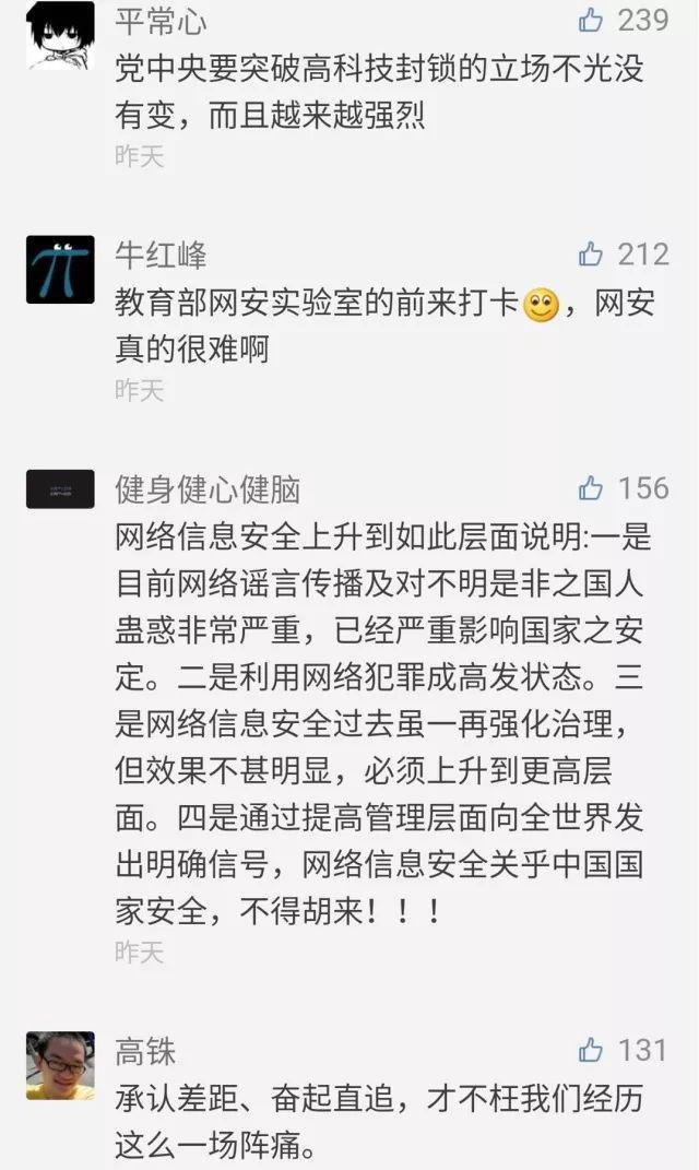 2016年4月的座談會(huì),習(xí)近平做了更詳細(xì)的論述:網(wǎng)信發(fā)展的意義、網(wǎng)絡(luò)輿論生態(tài)、網(wǎng)信核心技術(shù)要盡快突破、網(wǎng)絡(luò)安全問題、互聯(lián)網(wǎng)企業(yè)要增強(qiáng)使命感和責(zé)任感、用好互聯(lián)網(wǎng)人才。這篇講話被稱為“4?19重要講話”。