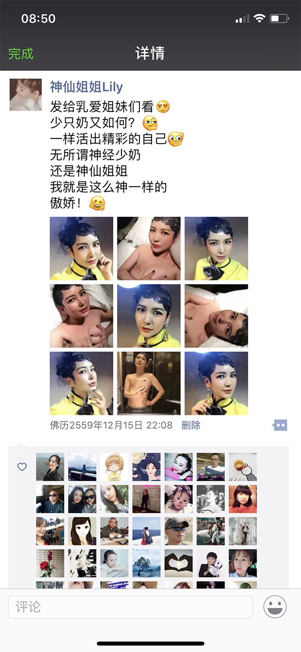 2016年12月,李琍在微信朋友圈發(fā)布的自拍照。