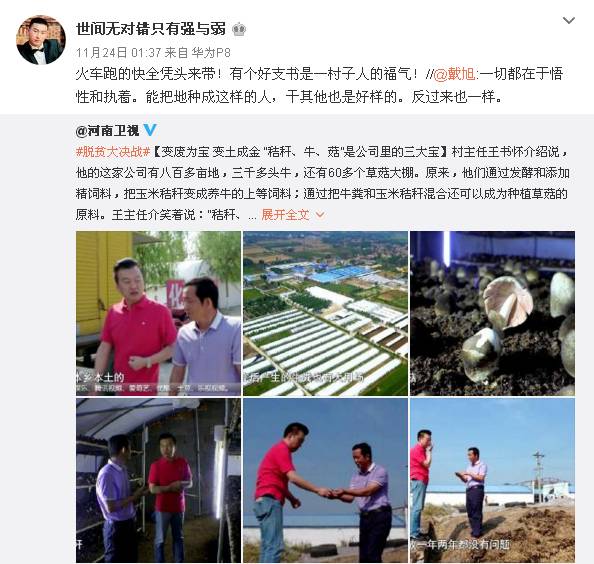 網(wǎng)友“世間無對錯只有強(qiáng)與弱”評論說:火車跑的快,全憑頭來帶!有個好支書是一村子人的福氣!