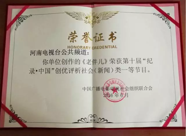 7月6日至9日,第十屆“紀(jì)錄·中國(guó)”創(chuàng)優(yōu)評(píng)析活動(dòng)在廈門(mén)舉行,河南電視臺(tái)公共頻道創(chuàng)作的紀(jì)錄片《老伴兒》,榮獲社會(huì)類一等獎(jiǎng)。