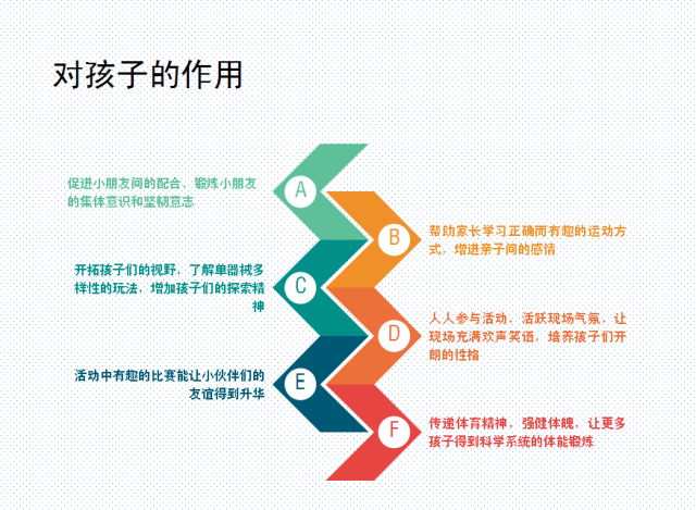 “趣味親子運動趴”根據孩子年齡不同設置指標,由家長和孩子共同參與、相互協作完成,是一次從耐力到動手能力、反應力到創(chuàng)造力,速度與平衡全面考量的一系列親子活動,從“歡樂親子跑”到“趣味體能大沖關”,不但提高幼兒的活動技能,開拓孩子們的視野,增加孩子們的探索精神,增強少年兒童的身體素質的,又寓教于樂,有利于孩子們身心健康成長,同時讓家長們也了解正確而有趣的運動方式,更好的增進父母與孩子間感情。