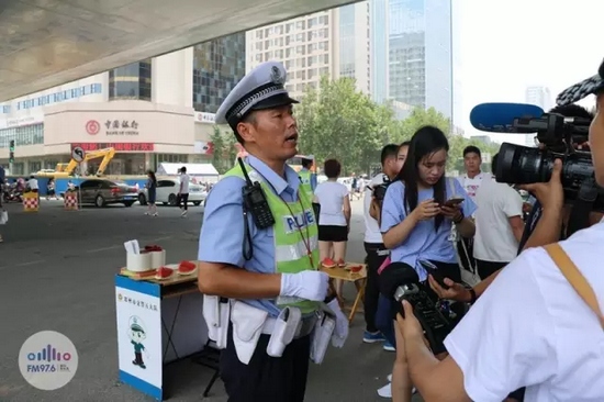 交警楊華民甚至來不及吃一口我們切好的西瓜