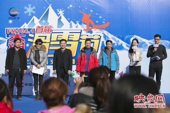 準備工作已經就緒,車友們已經按捺不住要滑雪的心情了,在滑雪正式開始之前,1041《MORE FUN 音樂》主持人王哲和《馬路歡樂派—早間》主持人彎彎,禹州市大鴻寨臥佛山旅游開發(fā)有限公司總經理王鋒偉先生也來給大家加油打氣了。