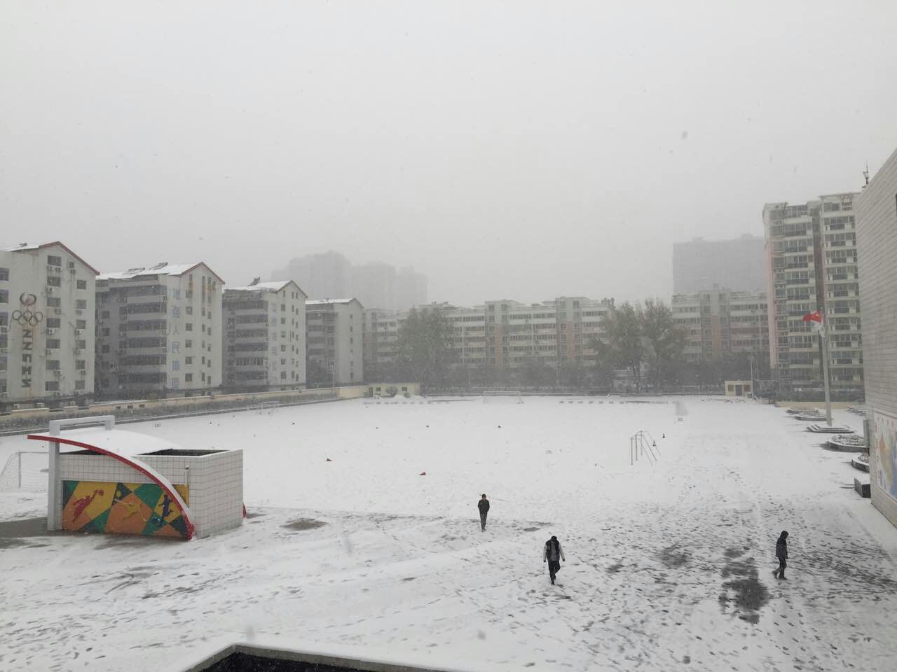 今天是二十四中的小雪,鄭州也迎來了降雪,一瞬間,鄭州便被銀裝素裹了起來。據(jù)了解,此次降雪預計于今晚后半夜停止。明天白天鄭州陰天轉(zhuǎn)多云。