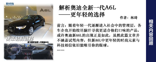 編輯點評:新一代奧迪A6L外觀更加年輕,目標用戶群會進一步下探,而A6L更大的改變在與內飾上,更寬敞的空間,更豪華的內飾,更加具有科技含量的電子配置。動力總成和四驅系統(tǒng)上變化較少,好在奧迪A6L的用戶群對此并不十分關心。頂著“第一官車”的光環(huán),有政府采購做保障,奧迪A6L并不愁銷路,不過奧迪希望能逐步降低對公務市場的依賴,以降低采購政策改變所帶來的風險。
