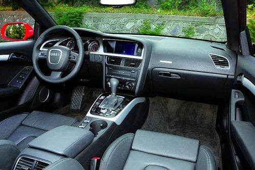 奧迪A5 Cabriolet 2.0T雖然身為一款敞篷跑車,但其內(nèi)飾設(shè)計(jì)卻與奧迪轎車的整體風(fēng)格完全一致。在這個(gè)座艙里,我們看不到大面積的金屬裝飾,也找不到刺激駕駛者腎上腺素分泌的夸張?jiān)O(shè)計(jì)。黑色依然是座艙的核心色調(diào),各種豪華配置告訴我們——這并不是一款過分追求動(dòng)態(tài)性能的車,舒適才是它的首要任務(wù)。駕駛臺(tái)上,MMI多媒體互動(dòng)系統(tǒng)依舊是所有座艙系統(tǒng)的核心。與上一代系統(tǒng)相比,新一代MMI多媒體交互系統(tǒng)的改進(jìn)包括3個(gè)方面:第1,硬盤驅(qū)動(dòng)的導(dǎo)航系統(tǒng)功能更加強(qiáng)大;第2,屏幕顯示和圖像處理能力均有提升;第3,操作按鍵的設(shè)計(jì)更加人性化,便于用戶靈活自如地使用各項(xiàng)功能。