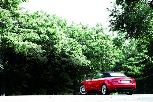 雖然對(duì)奧迪A5 Cabriolet 2.0T已經(jīng)非常熟悉,但在走到它身邊的時(shí)候還是興奮不已。毋庸置疑,火紅色的奧迪A5 Cabriolet 2.0T實(shí)在是太美了,低矮的車身極具運(yùn)動(dòng)韻味,黑色的折疊軟頂在紅色車身的映襯下非常搶眼。最令人欣喜的是,奧迪A5 Cabriolet 2.0T的前風(fēng)擋外框采用了亮銀色涂裝,并延伸至駕駛艙周身,構(gòu)成了一個(gè)完整的裝飾圈,起到了畫龍點(diǎn)睛的作用。