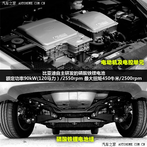 這輛比亞迪e6純電動車有一套由比亞迪自主研發(fā)的磷酸鐵鋰電池,額定功率90kW(120馬力)/2550rpm,最大扭矩450牛米/2500rpm。巨大的電池組就被設計在車身底部中段的位置,電池組外面帶有鋼制保護殼體,避免電池組直接受到撞擊和剮蹭。由于巨大的電池組,比亞迪e6車身質(zhì)量達到了2.3噸,論重量和大眾途銳和寶馬X6達到了一個數(shù)量級。