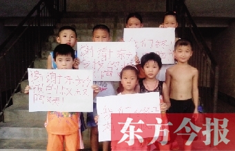昨晚,已經(jīng)返回當(dāng)?shù)氐内w會(huì)勇傳來圖片,畫面上,幾個(gè)孩子舉起寫著“感謝東方今報(bào)的叔叔阿姨”的紙片。字寫得歪歪扭扭,但,看到的人都覺得很溫暖。DF