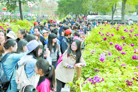 4月4日,在洛陽王城公園,來自四面八方的游客在觀賞盛開的牡丹花。4月5日,為期1個月的第30屆洛陽牡丹文化節(jié)將隆重開幕,洛陽市各大公園的各色牡丹也將陸續(xù)綻放,中外游客盡可以感受古都洛陽的今日風(fēng)采,觀賞洛陽牡丹的嬌艷芳容。 河南日報(bào)農(nóng)村版記者 楊遠(yuǎn)高 攝