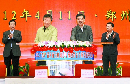 河南日?qǐng)?bào)訊 (記者平 萍 田宜龍 張建新)4月的中原大地,春暖花開(kāi),生機(jī)盎然。11日上午,2012廣東產(chǎn)品河南行啟動(dòng)暨粵豫經(jīng)貿(mào)合作項(xiàng)目簽約儀式在鄭州國(guó)際會(huì)展中心隆重舉行。率廣東省黨政代表團(tuán)來(lái)豫考察的中共中央政治局委員、廣東省委書記汪洋,省委書記、省人大常委會(huì)主任盧展工出席并共同啟動(dòng)廣東產(chǎn)品河南行活動(dòng)。廣東省委副書記、省長(zhǎng)朱小丹,省委副書記、省長(zhǎng)郭庚茂分別致辭。