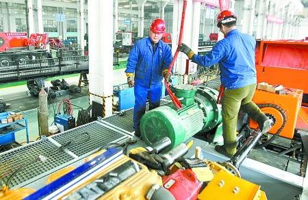 3月17日,南陽二機集團出口烏茲別克斯坦的2000米拖掛鉆機正在加緊組裝中。目前,這家企業(yè)已和烏茲別克斯坦確立了在當(dāng)?shù)睾献鹘◤S的意向,今年將有20臺套鉆機在該國本地生產(chǎn)。 王天定 攝