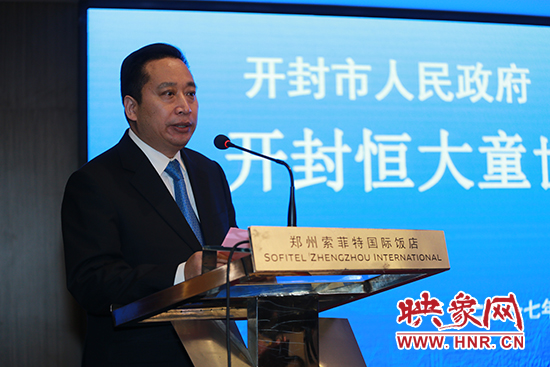 開封市委書記吉炳偉在致辭中稱,在文化產(chǎn)業(yè)方面,開封在全國率先提出了“文化+”理念,制定并實(shí)施了“文化+旅游”、“文化+城建”、“文化+會(huì)展”等10個(gè)專項(xiàng)行動(dòng)計(jì)劃,推進(jìn)完成了開封鼓樓、開封西湖、“一河兩街三秀”、“一節(jié)一會(huì)一論壇一賽事”等一批“文化+”重點(diǎn)產(chǎn)業(yè)項(xiàng)目,通過新的聯(lián)接、新的重組、新的融合,激活開封沉睡的文化基因,讓開封得天獨(dú)厚的文化資源轉(zhuǎn)化成項(xiàng)目、轉(zhuǎn)化成產(chǎn)業(yè)、轉(zhuǎn)化成促進(jìn)經(jīng)濟(jì)社會(huì)發(fā)展的新動(dòng)力。“開封恒大童世界項(xiàng)目建成后,將成為集文化旅游、文化創(chuàng)意、生態(tài)休閑、商業(yè)服務(wù)為一體的大型綜合體項(xiàng)目,每年將帶動(dòng)周邊旅游人數(shù)增長1500萬人次。”吉炳偉稱,這將是開封自建國以來最大的文化項(xiàng)目,是推進(jìn)鄭汴一體化深度發(fā)展的重大項(xiàng)目,同時(shí)也是河南省加快構(gòu)筑文化高地、開封加快構(gòu)筑文化高地示范區(qū)的重大項(xiàng)目,更是全面提速開封經(jīng)濟(jì)社會(huì)發(fā)展的重大項(xiàng)目,未來發(fā)展前景不可限量,必將為河南省乃至國家中部地區(qū)的文化旅游產(chǎn)業(yè)增添新的動(dòng)力和活力。