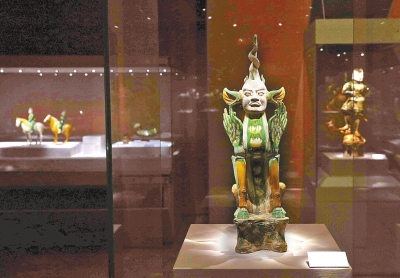 唐三彩因創(chuàng)燒于唐代,且釉色多以黃、綠、白三色為主色而得名。唐三彩以釉彩斑斕、色澤艷麗而著稱(chēng),體現(xiàn)了唐代盛世激揚(yáng)的時(shí)代精神,是我國(guó)陶瓷發(fā)展史上的重要一環(huán),也影響了中國(guó)后世低溫釉陶及鄰近諸國(guó)的陶瓷工藝發(fā)展。(記者游曉鵬文李康平偉攝影)