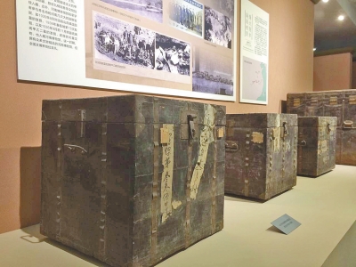據(jù)了解,臺(tái)北·歷史博物館與河南省素有淵源,十幾年前,河南博物院就與歷史博物館建立了姐妹關(guān)系,開(kāi)創(chuàng)了兩岸博物館締結(jié)姐妹關(guān)系的先河??谷諔?zhàn)爭(zhēng)爆發(fā) 后,民國(guó)河南省政府為保存文物,輾轉(zhuǎn)將當(dāng)時(shí)河南博物館的精品由河南運(yùn)至漢口、重慶,其中38箱、共5000余件組文物最終運(yùn)到中國(guó)臺(tái)灣。這批文物后被撥交 臺(tái)北·歷史博物館,成為該館館藏重要基礎(chǔ)。昨日展覽現(xiàn)場(chǎng)記者注意到,4只飽經(jīng)滄桑的木箱也被擺在展廳入口處的展臺(tái)上,外表還留有編號(hào)和封條,頗為引人注 意,它們正是那批河南文物1937年南遷時(shí)所用的包裝箱。