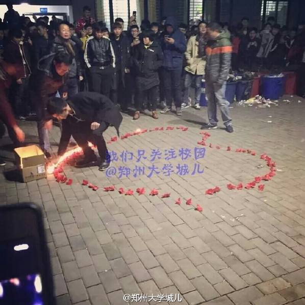 有時(shí)候表白失敗的因素不一定是被拒絕了,還有可能是學(xué)校領(lǐng)導(dǎo)的滅火器!在鄭州財(cái)經(jīng)學(xué)院,女主還沒(méi)來(lái),一場(chǎng)還未開(kāi)始的表白就已經(jīng)結(jié)束了,心疼那個(gè)男同學(xué),估計(jì)現(xiàn)在那帥男已經(jīng)哭暈在廁所,嗚,領(lǐng)導(dǎo)“法海”你還我愛(ài)情。