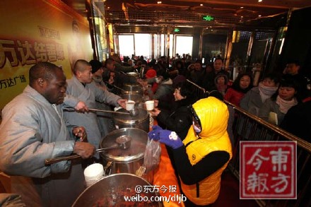 今早9點(diǎn),大學(xué)路二七萬達(dá),聚集上千人,少林寺免費(fèi)施粥,三天熬制兩萬份。不少市民早上7點(diǎn)來排隊,提著餐盒保溫桶大碗,現(xiàn)發(fā)現(xiàn)喝。大早上一碗熱乎乎的臘八粥下肚,透心暖?,F(xiàn)場人員還在源源不斷增加中。今天你喝臘八粥了嗎?