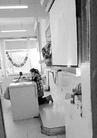 11、老師因患腰病跪著上課 感動