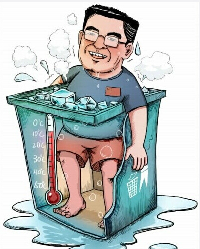 陳光標(biāo)曾發(fā)布視頻顯示他在0℃以下的冰水里浸泡了30分鐘,并發(fā)起挑戰(zhàn):若有人超越他,就捐款100萬。最終,湖南性學(xué)泰斗文德元通過動(dòng)物冰水浸泡實(shí)驗(yàn),揭穿了其“冰水挑戰(zhàn)”的把戲,陳光標(biāo)近日首度承認(rèn)造假。浮冰之下,是50度的熱水!