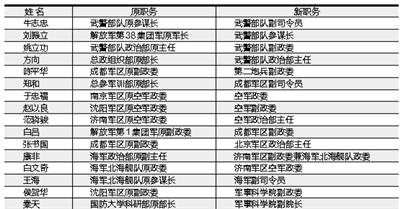 七大軍區(qū)中,南京、成都、北京以及沈陽軍區(qū)的副政委職務(wù)均有變動(dòng)。例如,成都軍區(qū)原副政委張書國調(diào)往北京軍區(qū)出任政治部主任,接替他的是南京軍區(qū)原副政委白呂;沈陽軍區(qū)的原副政委侯賀華外調(diào)至軍事科學(xué)院;另如,成都軍區(qū)原副政委陳平華調(diào)至二炮任副政委;姚立功也是在武警政治部主任與武警部隊(duì)副政委間調(diào)整。此外,空軍內(nèi)所涉及的副大軍區(qū)級(jí)調(diào)整也都是與政治干部有關(guān)系。