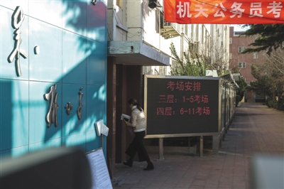 今年國考北京全市共設(shè)置了100個考點。昨日,記者來到北京林業(yè)大學(xué)第二教學(xué)樓的考點。11時許,考生結(jié)束了行政能力測試的考試離開考場。一名考生告訴記者,今年的考題“數(shù)量關(guān)系”部分難度不小,自己沒有答完?!拔业谝淮螀⒓訃迹沧鲞^以前的考卷,但感覺今年還是比較難,數(shù)學(xué)題有點像奧數(shù),后面沒做完,有好多是蒙的?!边@位考生說。
