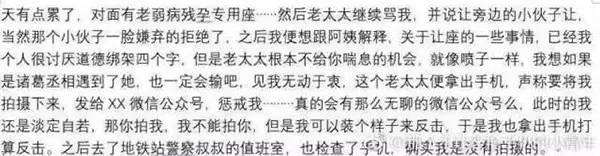 前段時間,地鐵上一90后女孩因為生理期沒有給大媽讓座,大媽就諷刺女孩沒素質(zhì),不懂得尊老愛幼。女孩因為生理期心情不好,就反駁了對方幾句。