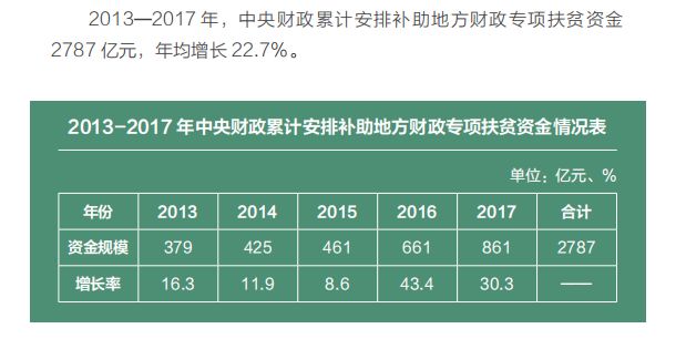 今年,中央財(cái)政預(yù)算擬安排補(bǔ)助地方專項(xiàng)扶貧資金 1061 億元,首次突破千億元規(guī)模。中央財(cái)政新增扶貧投入及有關(guān)轉(zhuǎn)移支付向深度貧困地區(qū)傾斜。