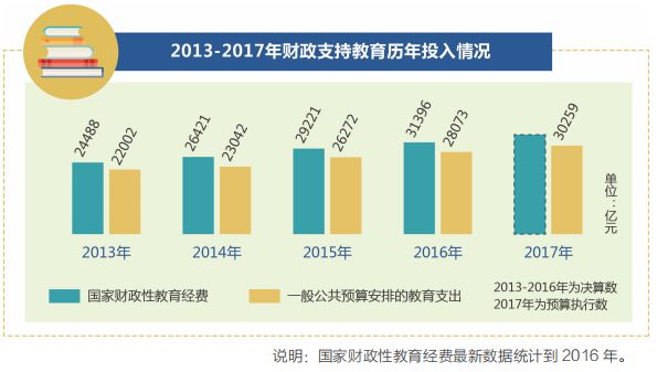 幼有所育、學(xué)有所教。自2013年以來,全國財(cái)政花在教育上的錢逐年增加。2018年,這一支出預(yù)算將繼續(xù)增加至31437億元。資金將用于支持發(fā)展公平優(yōu)質(zhì)教育,改善貧困地區(qū)義務(wù)教育薄弱學(xué)?;巨k學(xué)條件等。