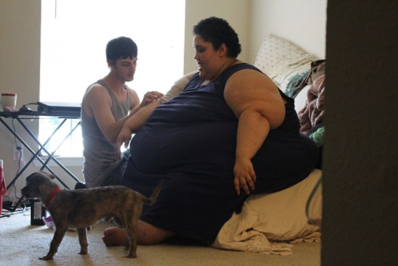 美國德克薩斯州休斯頓有個名叫貝蒂的女子體重高達600斤。造成這個年僅24歲女人如此肥胖的原因是其飲食習(xí)慣,她酷愛炸雞和烤肉醬。因體重過大,這位女子非但無法出門,就連上廁所、洗澡和吃飯都要丈夫Josh伺候。