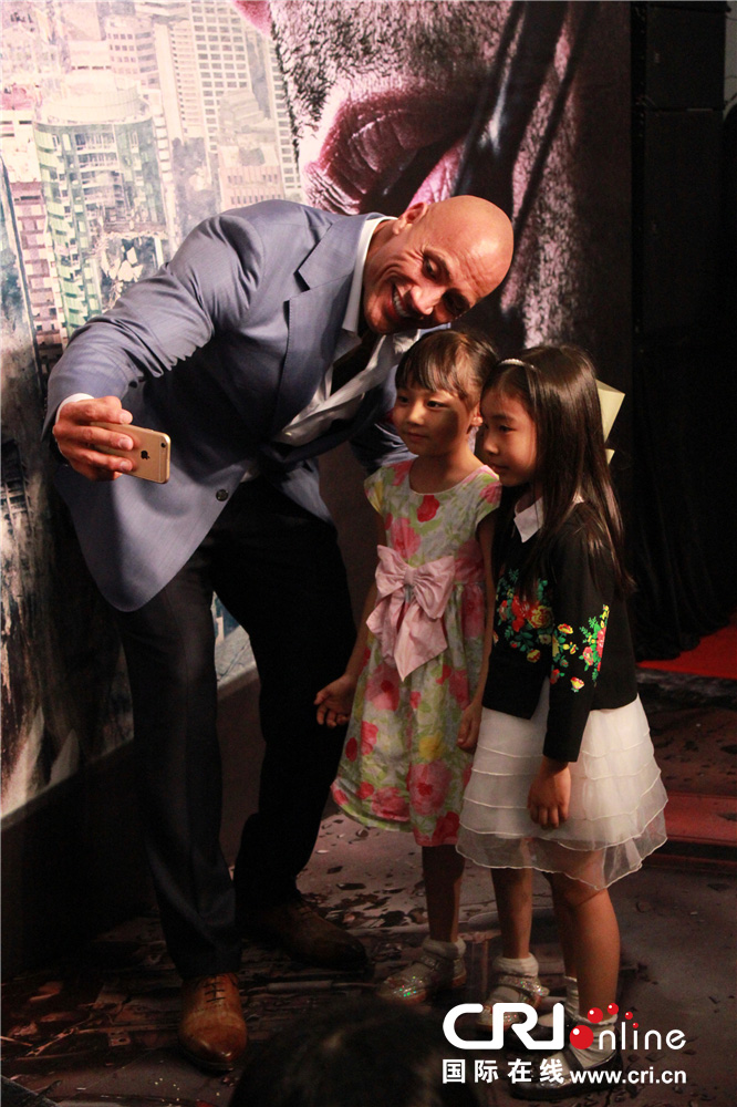 強森與獻花小粉絲賣萌自拍 見面會主創(chuàng)提醒“一定記得喘氣”