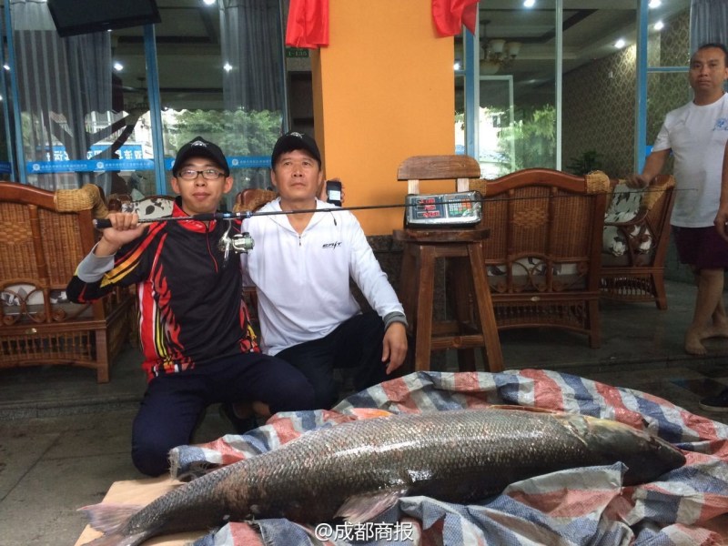昨日凌晨,在三岔湖中,來(lái)自成都華陽(yáng)的劉躍軍、劉晨父子,與水中的大魚(yú)激戰(zhàn)三個(gè)半小時(shí),終于將它弄上了岸。大魚(yú)身長(zhǎng)1.63米,重98.4斤。據(jù)資深漁友介紹,從外形上看,此魚(yú)應(yīng)為鳡魚(yú),并非四川原生態(tài)魚(yú)種,是一種主要以小型魚(yú)類(lèi)為食的兇猛魚(yú)類(lèi)。