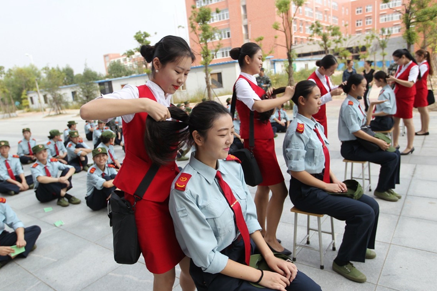 在大家普遍的印象里,學(xué)生軍訓(xùn)主要就是練隊(duì)列、踢正步等,最多還有軍體拳、步槍射擊。昨天上午,記者在鄭州航空工業(yè)管理學(xué)院軍訓(xùn)現(xiàn)場發(fā)現(xiàn),該院在站軍姿、踢正步等軍訓(xùn)項(xiàng)目上,引入卷尺、純凈水瓶等“裝備”,而且為“準(zhǔn)空姐”訓(xùn)練的課目中,還增加了如何盤發(fā)等項(xiàng)目。