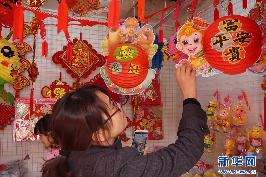 隨著丙申猴年正月十五元宵節(jié)的臨近,鄭州小商品市場(chǎng)各式花燈熱銷。據(jù)銷售人員介紹,今年的花燈品種豐富,除了琳瑯滿目的傳統(tǒng)手工制作花燈外,各種生肖、卡通造型的電動(dòng)花燈也是十分俏銷,尤其是各式各樣的“猴子”燈,尤其受到小朋友們的“寵愛”。新華網(wǎng)發(fā)(游黎、李志紅、王海霞 攝)