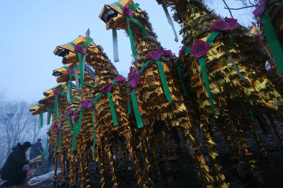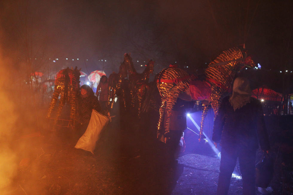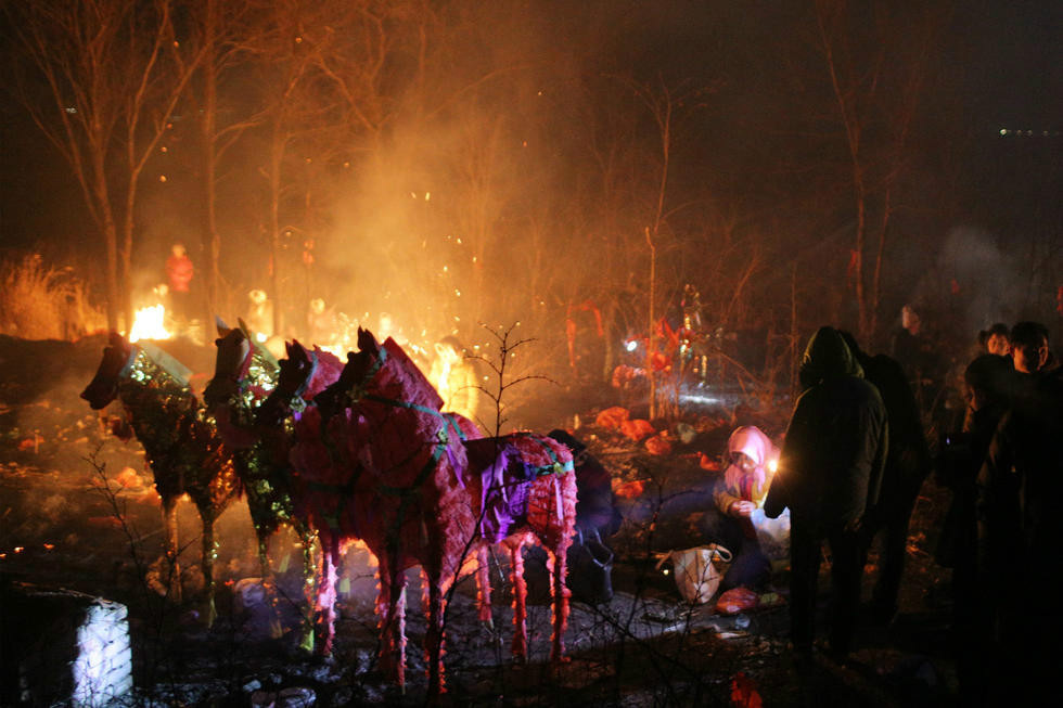 2016年2月23日凌晨,山東省濱州市惠民縣小霹靂莊,宋代古冢牛保冢上一年一度的正月十六祭祀活動正式開始,方圓百里萬余百姓陸陸續(xù)續(xù)趕來祭祀,以求風調(diào)雨順,家和事興。多種祭祀用紙馬先后被抬上祭壇引燃,化作火龍直沖云天,數(shù)量足有數(shù)千匹之多,場面壯觀且奇異,親臨現(xiàn)場宛若置身神鬼大片,令人印象深刻。