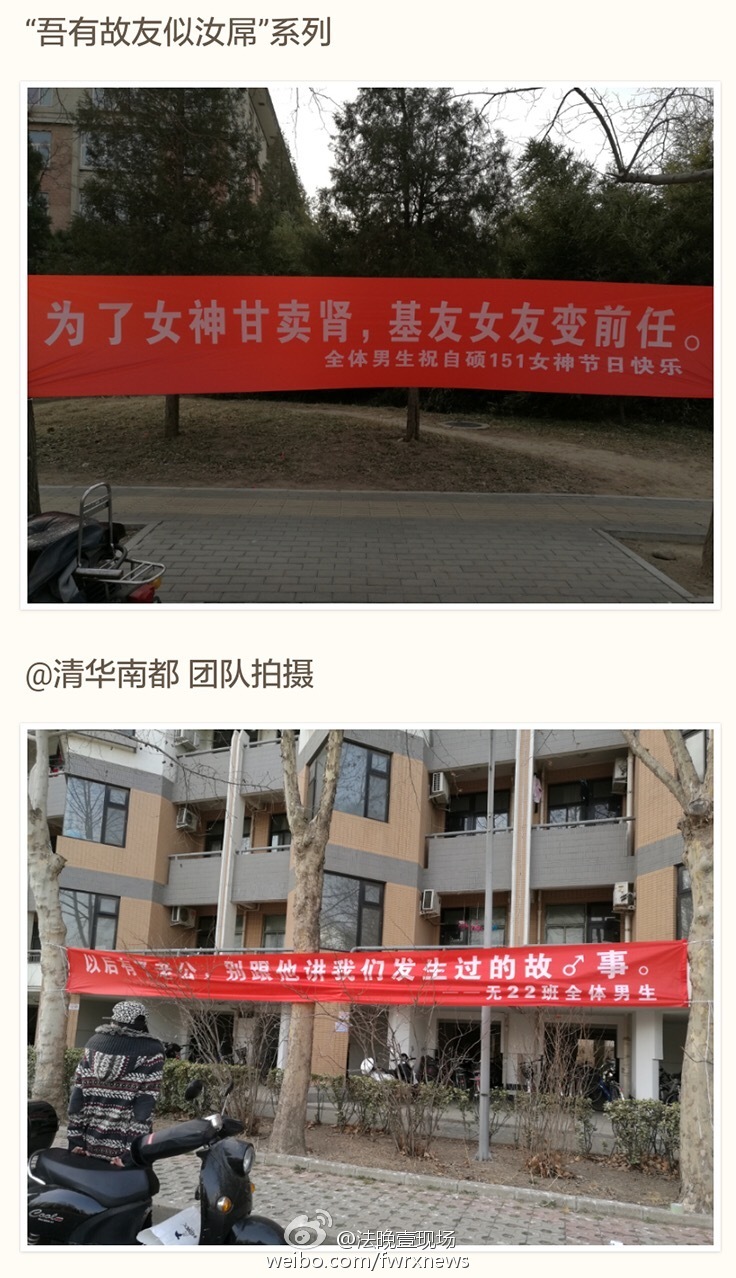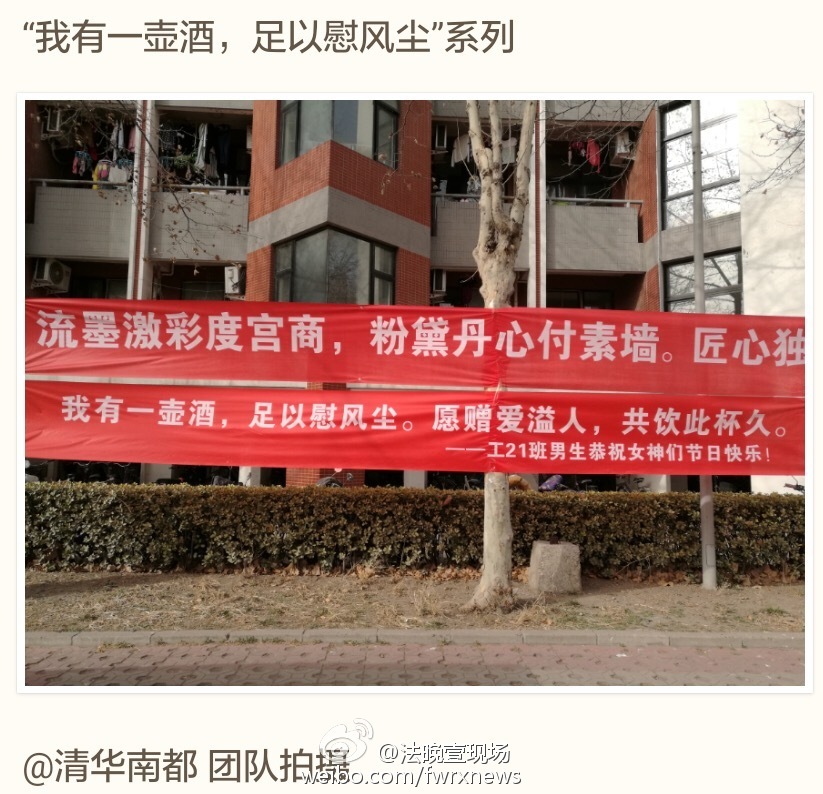 清華大學懸掛橫幅喜迎3.7女生節(jié)——文科生實在看不懂理工科的公式。