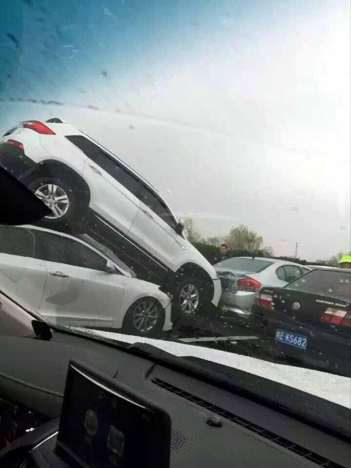 3月8日早上,受寒潮影響,南京雨水不停,寧馬高速南京方向的板橋附近,發(fā)生九車連環(huán)相撞事故,其中一輛SUV被后面追尾的轎車完全頂起,造成道路擁堵。目前,事故原因交警仍在調查中。