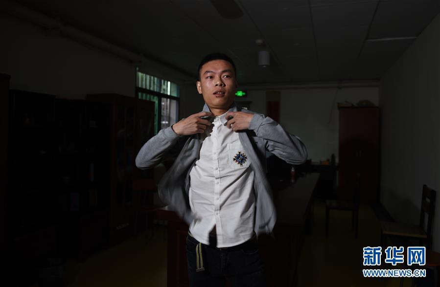 “替身”王峰來自湖南婁底,28歲的他在長沙南仁??漆t(yī)院工作。王峰在網(wǎng)上看到招募消息后,立刻跟帖自薦報(bào)名,由于年齡和身材與黃舸接近,他成了黃小勇最終選定的扮演黃舸的人選。新華社記者 李尕 攝 圖片來源:新華網(wǎng)