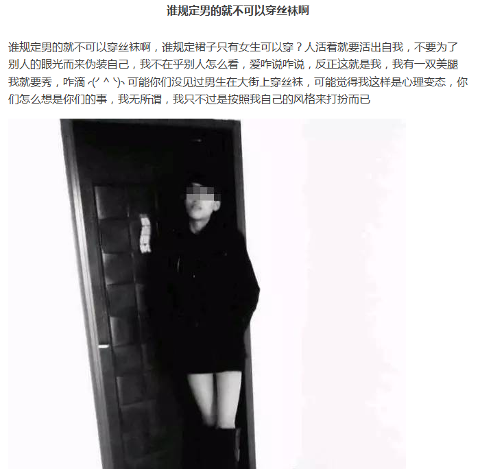 好吧,小編還是第一次見到這位網(wǎng)紅,難免心情有些小激動。畢竟每個人都有一顆愛美的心和追求美的權(quán)利。只是這位小伙很“勇敢”的表達出了自己內(nèi)最深處的想法和最真實真是的自我。對此,小編只想說:請收下我的膝蓋!實在是佩服佩服!最后,也祝愿這位小伙早日找到能夠陪伴自己相愛一生的伴侶。