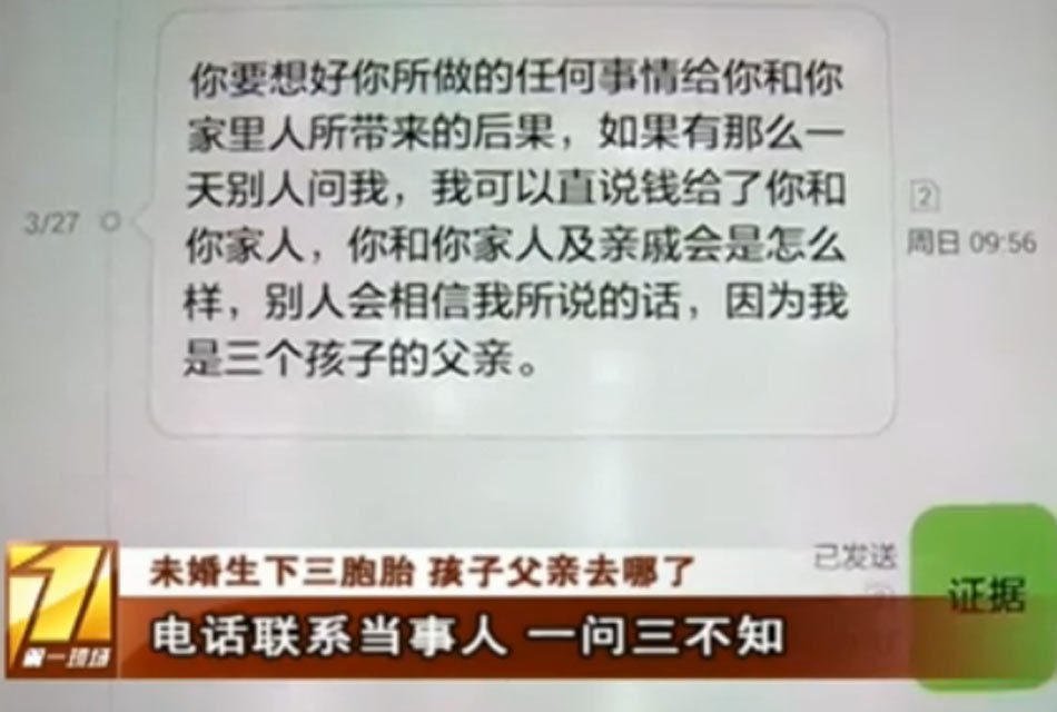 據(jù)深圳電視臺(tái)第一現(xiàn)場(chǎng)3月29日?qǐng)?bào)道,去年8月馬小姐生下了三胞胎,可自從孩子出生后,孩子的父親就避而不見,這讓馬小姐很無奈,也很無助。