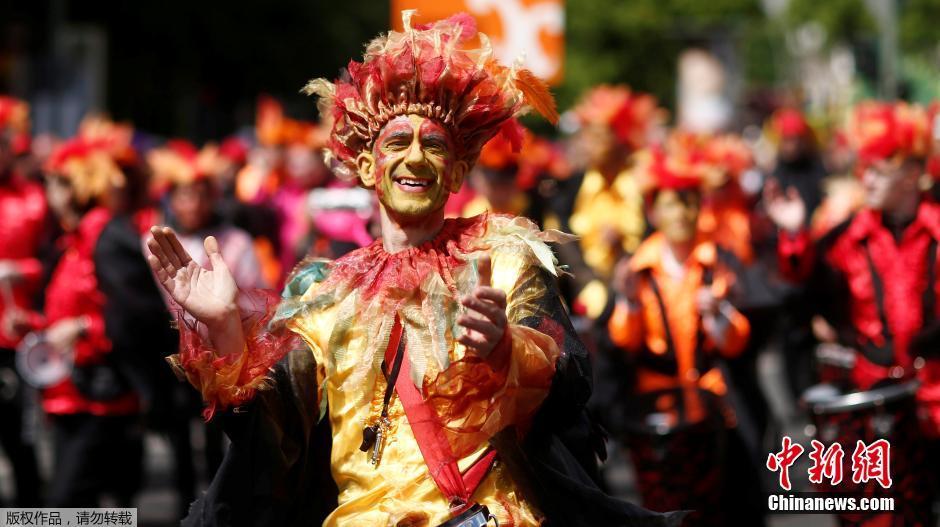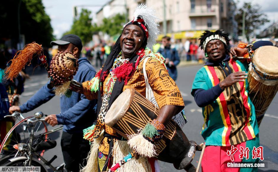 當地時間5月15日,德國柏林,當地民眾身著特色服飾在柏林文化狂歡節(jié)上參加游行。當日,柏林舉辦文化狂歡節(jié)大游行,數千名來自世界各地的狂歡者加入。