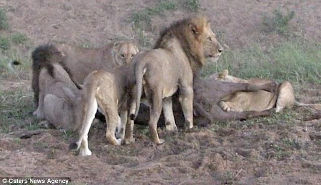 這次攻擊造成了一發(fā)不可收拾的局面,兩群獅子開始互毆決定誰先吃掉可憐的水牛。