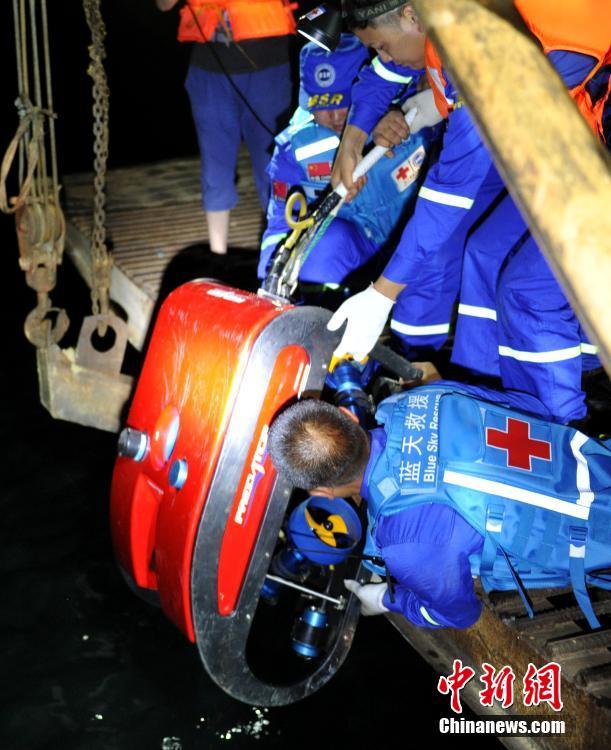 6月6日,四川廣元沉船事故救援現(xiàn)場,參與救援的水下機器人先后兩次下水,并通過攝像頭在翻沉的“雙龍”號船內發(fā)現(xiàn)有遇難者以及一些漂浮物品。圖為救援人員將水下機器人抬放入水。中新社記者 劉忠俊 攝