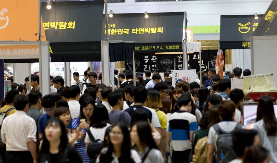 拉面(編者注:相當(dāng)于國(guó)內(nèi)的方便面)在韓國(guó)被成為“國(guó)民食品”,此次拉面博覽會(huì)旨在宣傳拉面的歷史和發(fā)展趨勢(shì),提升和推進(jìn)韓國(guó)拉面的品牌度和出口,同時(shí)了解和品嘗世界各國(guó)的拉面。