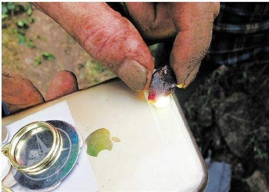 記者在現(xiàn)場(chǎng)看到,有人挖出五六顆還沒(méi)有指甲片大的小石頭,在手機(jī)燈下照了照,就被一女子以400元的價(jià)格買(mǎi)走。47歲的潘熙浩是磐安縣尖山鎮(zhèn)烏石村人,他是早上10點(diǎn)來(lái)的,兩三個(gè)小時(shí)的時(shí)間里,找到了兩顆指甲蓋大的石頭。