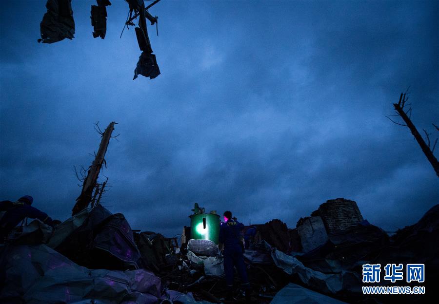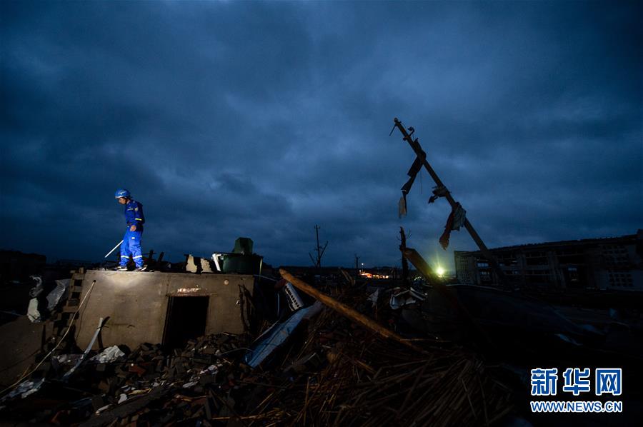 黎明時分,搜救人員繼續(xù)在江蘇省鹽城市阜寧縣受災(zāi)地區(qū)對廠房、民居等展開全面排查搜尋,營救受災(zāi)群眾。23日下午,江蘇省鹽城市阜寧縣、射陽縣部分地區(qū)突發(fā)龍卷風(fēng)冰雹嚴(yán)重災(zāi)害,多個鄉(xiāng)鎮(zhèn)受災(zāi),造成大量民房、廠房、學(xué)校教室倒塌,部分道路交通受阻。據(jù)初步統(tǒng)計(jì),已造成78人死亡,約500人受傷。