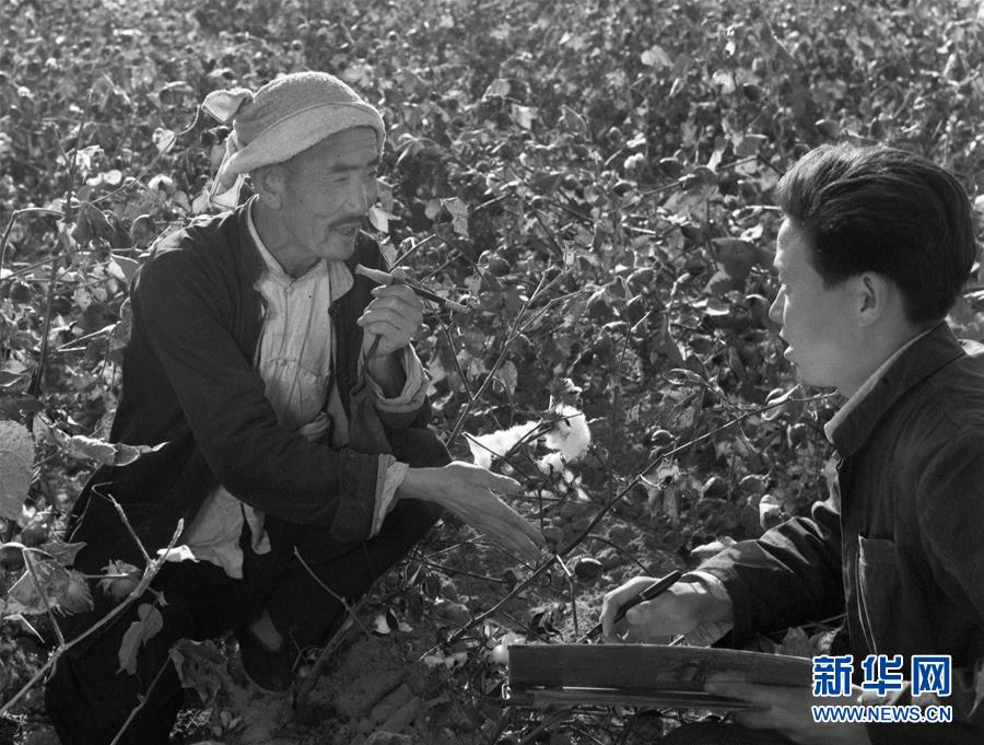 圖為植棉能手吳吉昌(左)在棉田里介紹他的植棉經驗。一張照片,定格一個瞬間;一組群像,打開一部史冊。中國共產黨成立95周年之際,我們選取新華社中國照片檔案館珍藏的資料照片,展現中國共產黨人特有的“紅色氣質”。新華社發(fā)